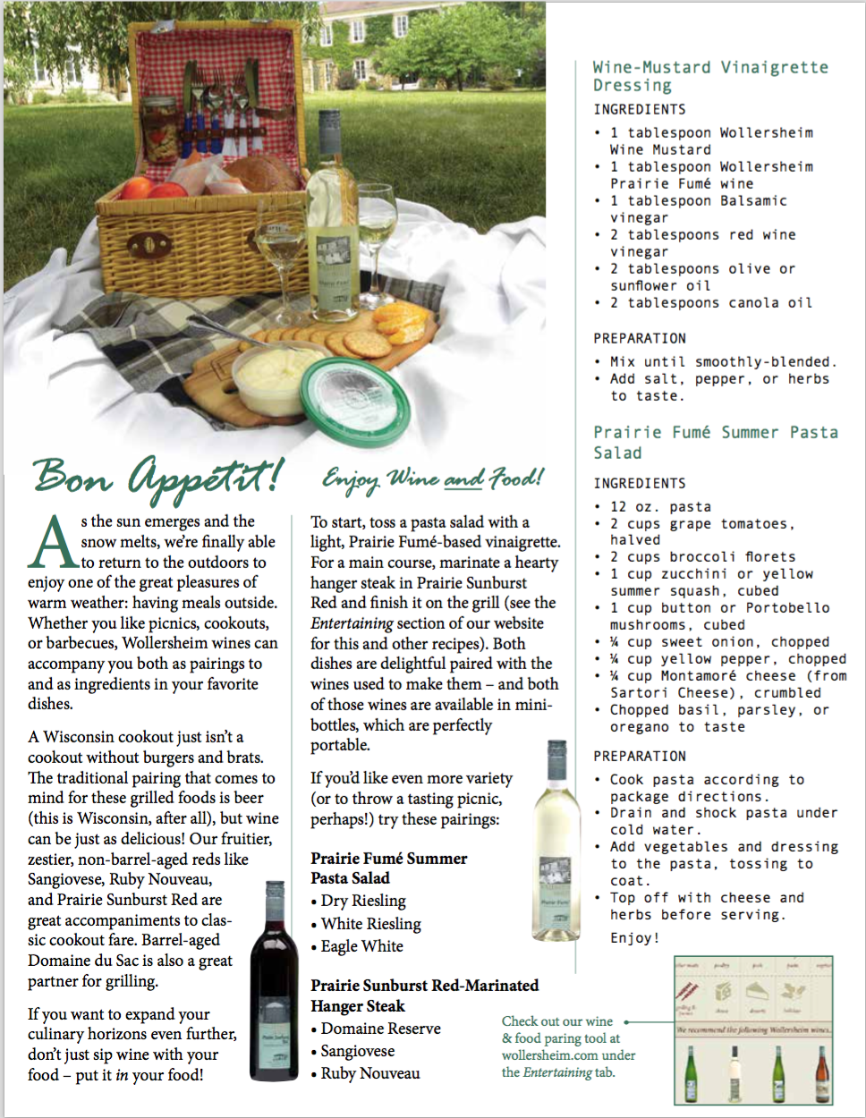I managed digital marketing, PR, and social media for Wollersheim Winery & Distillery from 2013-2015. The winery sent out a paper newsletter every few months to some 12,000 subscribers and I contributed educational articles focused on wine tasting, culinary arts, and viticulture.