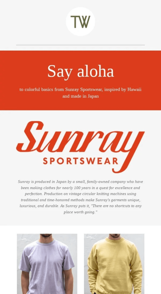 I co-own Tempest Works, a luxury menswear shop focused on Japanese and European brands. I manage our newsletter, which we use to preview new product drops, spotlight brands, share discount codes, and announce sales.